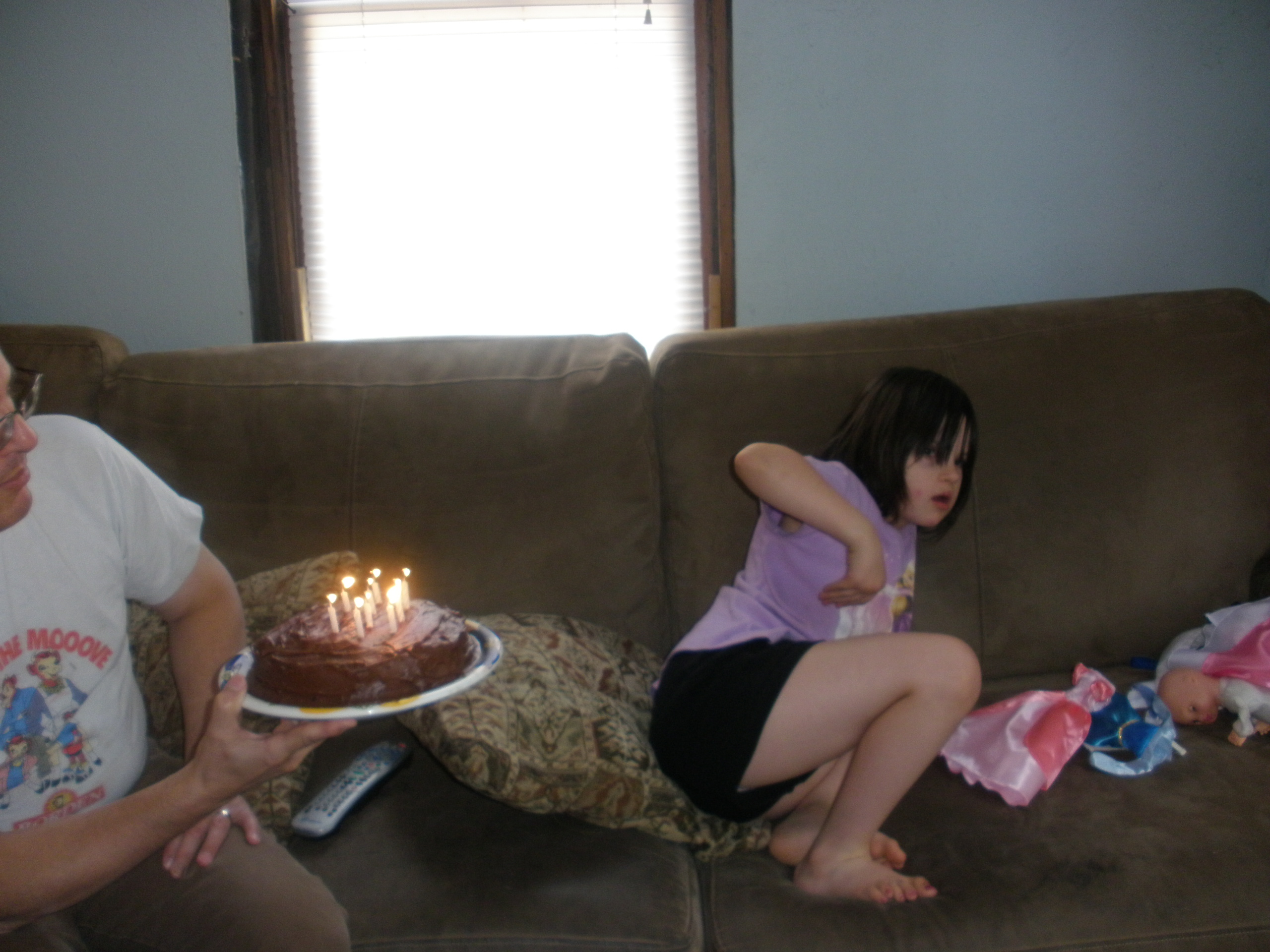 In the end, it didn’t really matter, because when it came time to sing “Happy Birthday”, Rebecca took one look at the fire on top of the cake and high-tailed it to the back room – she wanted NOTHING to do with blowing out the candles!