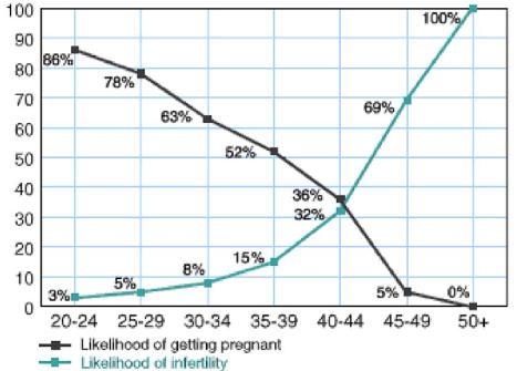 It has only been recently that a large amount of data has been available about womens’ fertility, but the sad fact of the matter is that it is harder to get pregnant as a woman ages. The number of viable eggs declines over time as well (increasing the chance of miscarriage or birth defects). By the age of 35, the biological clock starts ticking with a vengeance.