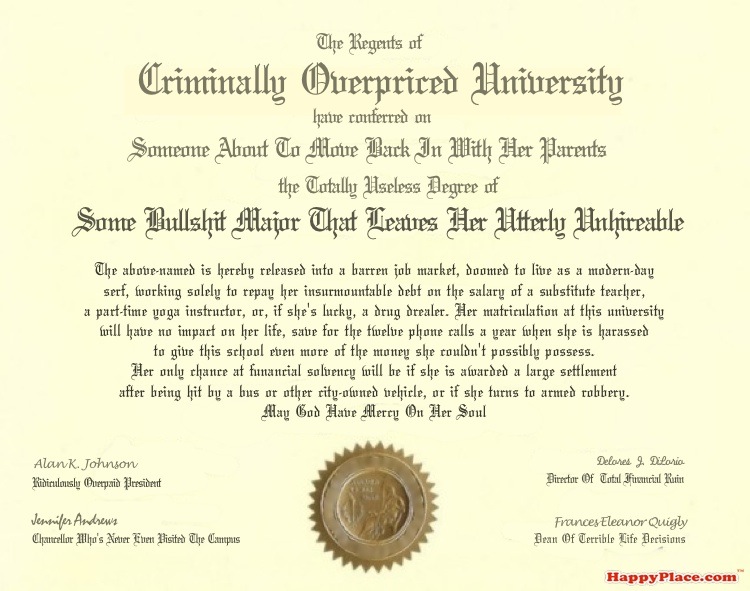 Diploma from Criminally Overpriced University